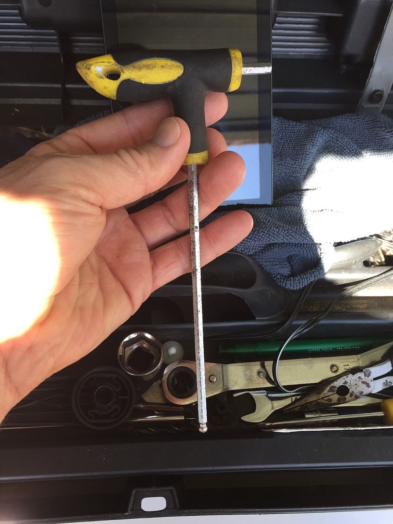 2. The throttle body itself is attached by 4 hex bolts. I found that a 5mm hex bit on a long screwdriver (like the one that I bought especially) worked best because I couldn't access the very bottom bolt using an allen key, not even a long one
